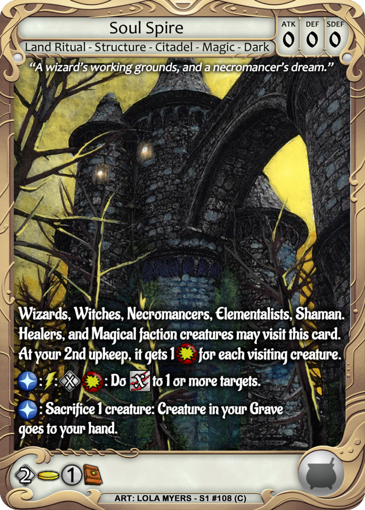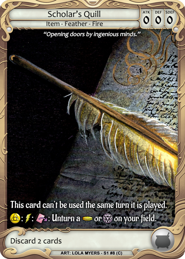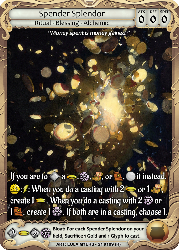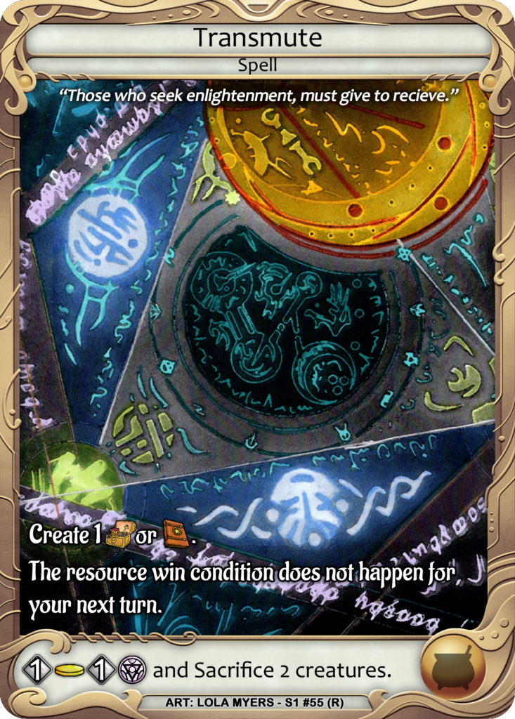 When it comes to the resource system, everything is a resource. Each turn, a player will gain a Regular Ingredient for their tableau (a Gold or Glyph), OR instead will Meld 2 of the same resource for an Upgraded Ingredient (Treasure trove and Arcane Tome). Get 3 Treasure Troves and 3 Arcane Tomes you win the game by resources!